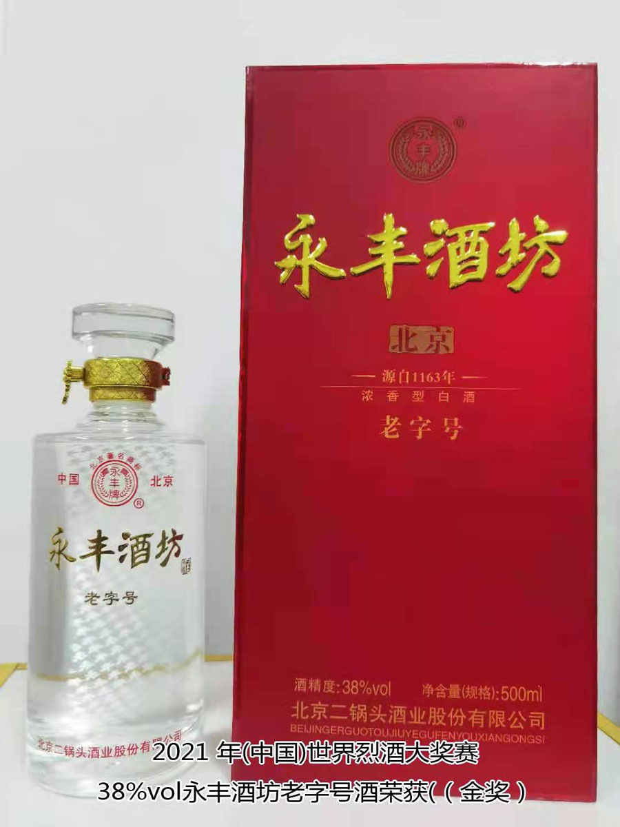 北京二鍋頭酒業(yè)股份有限公司傳承老北京二鍋頭傳統(tǒng)釀造技藝,產(chǎn)品選用優(yōu)質(zhì)高粱為原料,以麩曲為糖化發(fā)酵劑,采用老五甑發(fā)酵法、混蒸混燒、看花接酒、掐頭去尾、長(zhǎng)期儲(chǔ)存、精工勾兌而成。產(chǎn)品多次獲得各種優(yōu)質(zhì)產(chǎn)品稱號(hào),“永豐牌”商標(biāo)2000年度、2004年度、2007年度連續(xù)三屆被北京市工商行政管理局認(rèn)定為北京市著名商標(biāo);2003年9月,“永豐”二鍋頭、京王子酒被評(píng)為北京市優(yōu)秀新產(chǎn)品獎(jiǎng);2004年,被授予“中國(guó)白酒質(zhì)量?jī)?yōu)秀產(chǎn)品”及首都市場(chǎng)“質(zhì)量、信譽(yù)、服務(wù)”優(yōu)秀企業(yè)、優(yōu)質(zhì)產(chǎn)品稱號(hào);2006年11月,被評(píng)為“中國(guó)歷史文化名酒”;2007年12月,被評(píng)為“AAA”級(jí)信用企業(yè),同年榮獲“中國(guó)質(zhì)量過硬知名品牌”;2011年5月,“永豐”牌被中華人民共和國(guó)商務(wù)部評(píng)為“中華老字號(hào)”;2021年10月,在2021國(guó)際酒類(中國(guó))大獎(jiǎng)賽中,北京二鍋頭酒業(yè)股份有限公司共獲得五枚金牌,其中38%vol永豐酒坊老字號(hào)酒、46%vol永豐品鑒酒、52%vol醉流霞瓷瓶酒、50%vol永豐粱大俠(典藏)酒四款產(chǎn)品榮獲“金獎(jiǎng)”,50%vol永豐二鍋頭(國(guó)運(yùn))酒榮獲“大金獎(jiǎng)”。此次大獎(jiǎng)賽北京二鍋頭酒業(yè)股份有限公司榮登“金獎(jiǎng)”之首,得到了國(guó)際酒類(中國(guó))大獎(jiǎng)賽組委會(huì)及全國(guó)頂級(jí)評(píng)酒大師、酒業(yè)泰斗專家們的一致好評(píng),肯定了北京二鍋頭酒業(yè)股份有限公司專業(yè)技術(shù)人員高超的技藝和敬業(yè)的工匠精神。