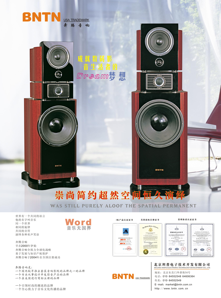 主要產(chǎn)品:BNTN奔騰音響、家庭影院